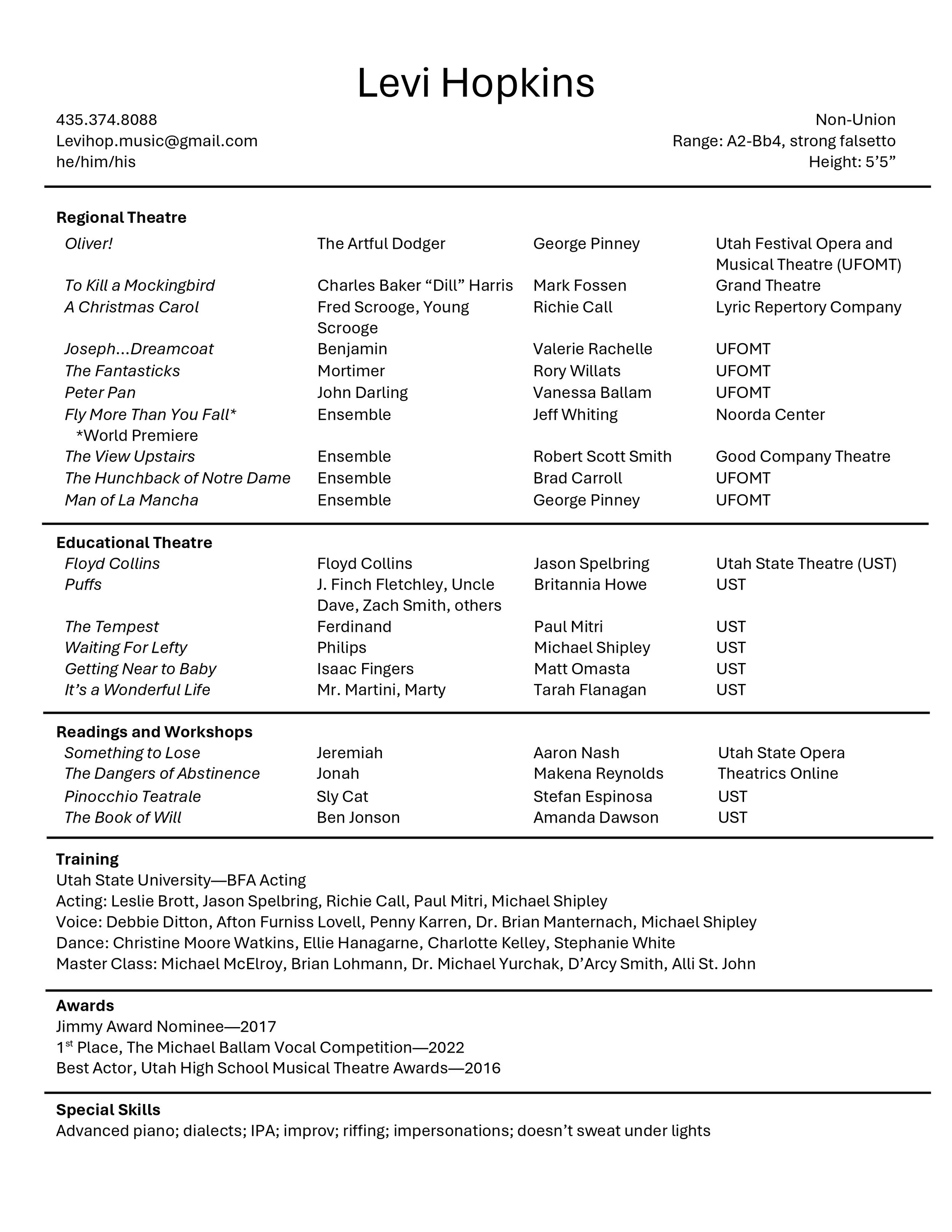 Headshots and Resume